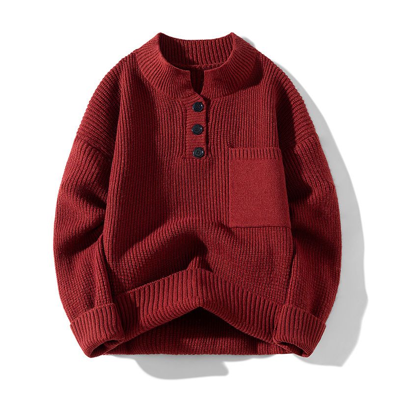 2025 New Autumn Winter Sweater Half Turtleneck Button Sweater Knitted Sweater Men's Versatile Sweater Jacket Z318