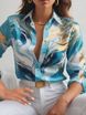 Neue Herbstmode Casual Loose Button Langarm bedrucktes Hemd für Frauen