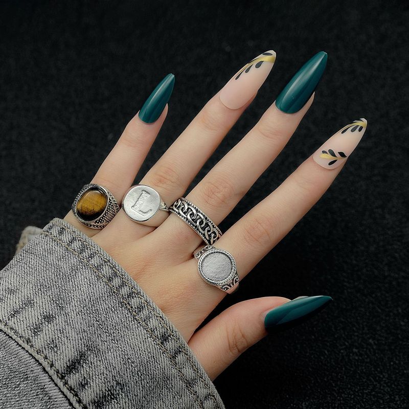 New Combination Ring Personality English Light Plate Tiger Stone 4-piece Set Large Ring