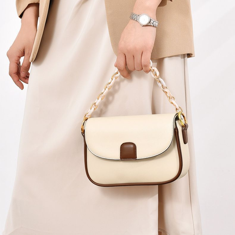 Neue modische und beliebte Damentasche, Umhängetasche, Freizeit- und einfache Handtasche mit Kontrastfarbe, kleine Handtasche mit Kette, einzelne Schultertasche