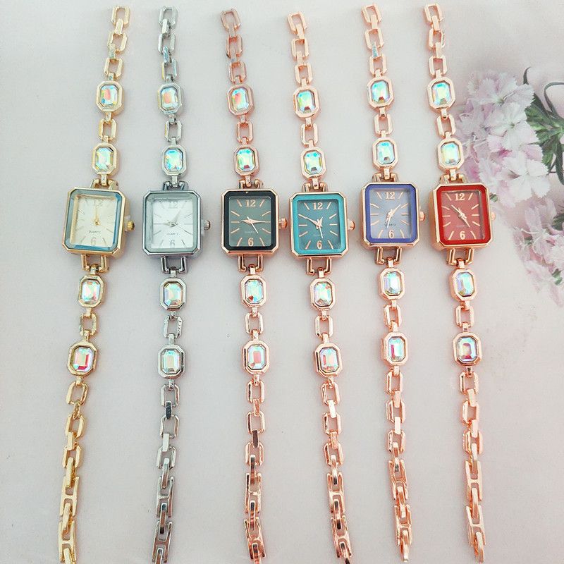 Neue Nischenlicht Diamant-besetzte Damen einfache quadratische Studentin Quarzarmbanduhr
