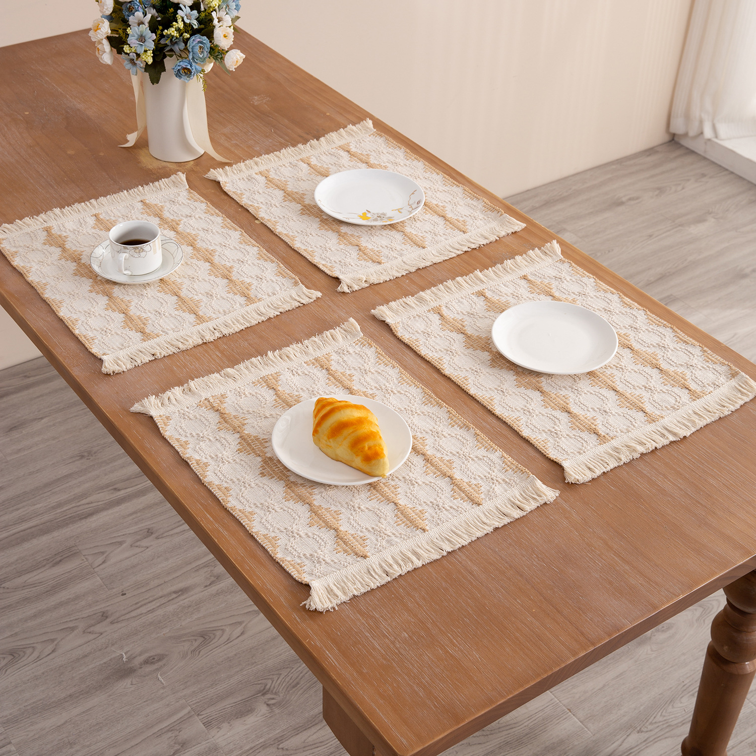 New Fabric Dinner Mat Cotton Leprosy Weaving Tableware Mat Tassel Insulation Mat Decorative Dual Color Spliced Western Dinner Mat