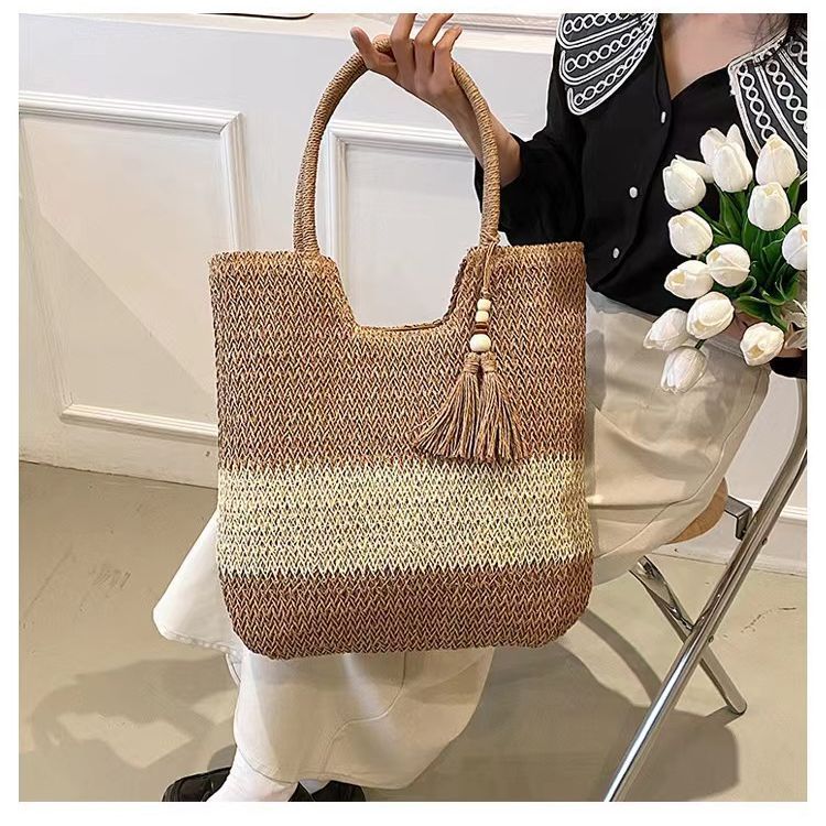 Neue Strandtasche, gewebte Retro-Tasche für Damen, große Kapazität für den Lebensmitteleinkauf von Babys und Müttern, modische Umhängetasche