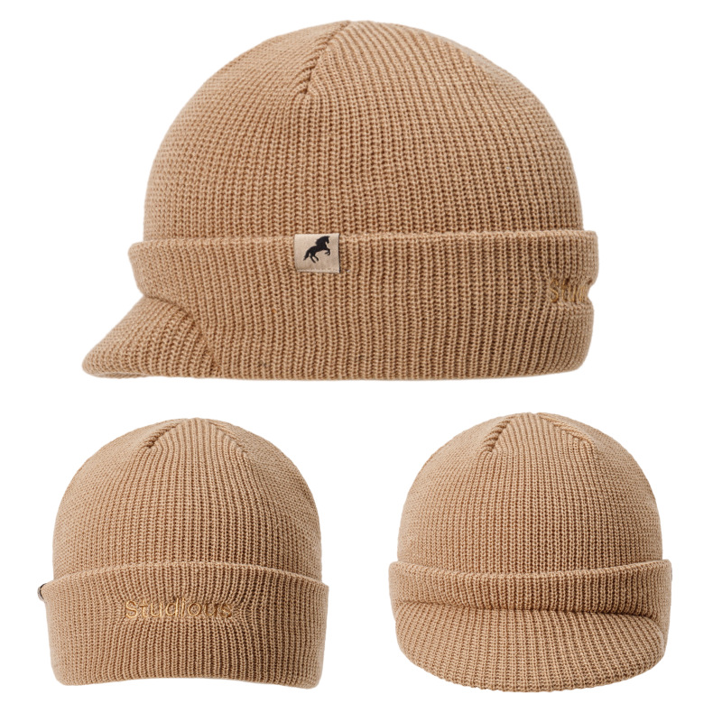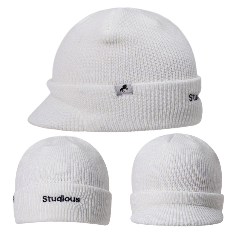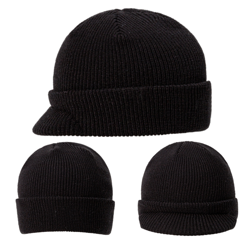Neue Strickmütze mit kurzer Krempe für Herren, Herbst und Winter, warm, gepolstert, bestickte Charaktere, großes Stirnband, locker