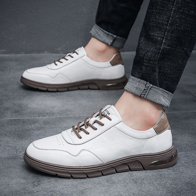Men's Shoes New Trendy Breathable Versatile Genuine Leather White Sneakers Internet Celebrity Casual Board Shoes
