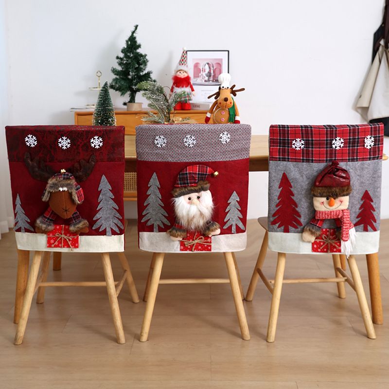 Neue Weihnachtsstuhlabdeckung aus Kunstleder, dreidimensionale Puppenstuhlabdeckung, europäische und amerikanische Tisch- und Stuhlabdeckung, Verkleidungsrequisiten