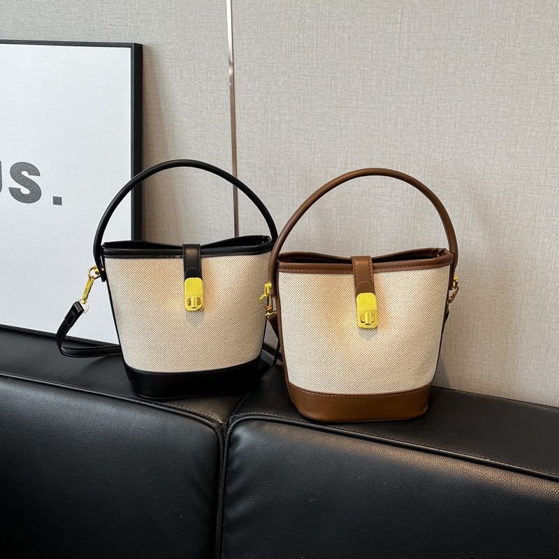 New Simple Bucket Bag for Women Korean Style Ins Versatile Color-Block Crossbody Bag with Zipper and Buckle Handbag Shoulder Bag