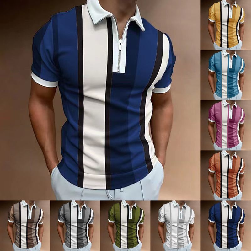 Neues kurzärmliges Poloshirt mit Farbblockierung und Reißverschluss für den Sommer für Herren
