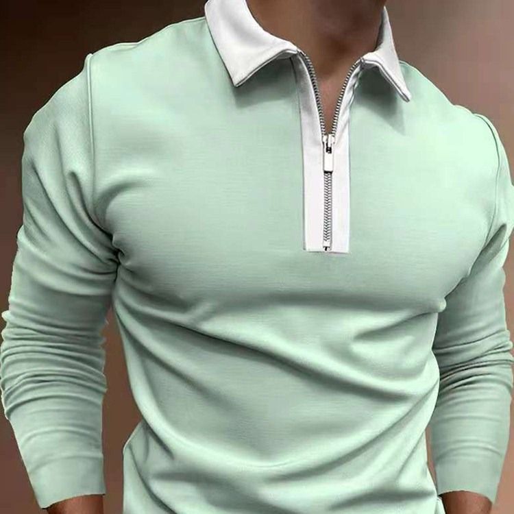 Neues Polohemd im neuen Stil 2025: Herren-Langarmshirt mit Umlegekragen, Reißverschluss, Farbblock-Digitaldruck
