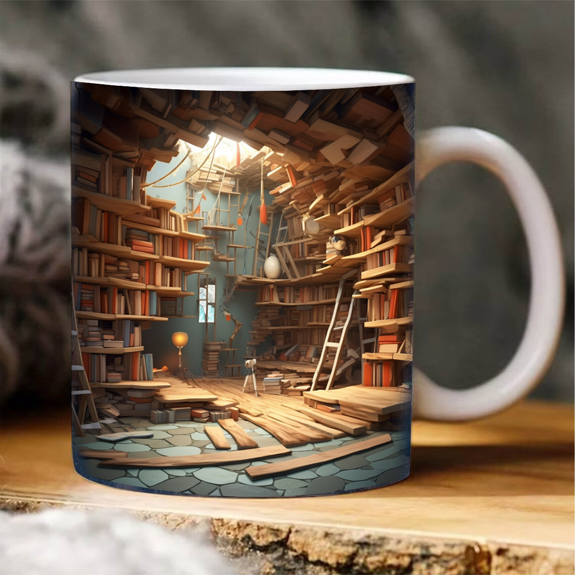 Ceramic Mug Home Creative Library Coffee Cup Cross-Border 3D Bookshelf Mug Ceramic Water Cup