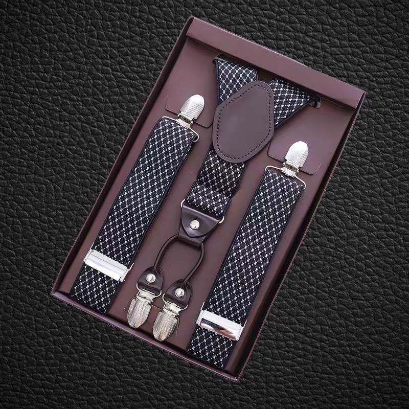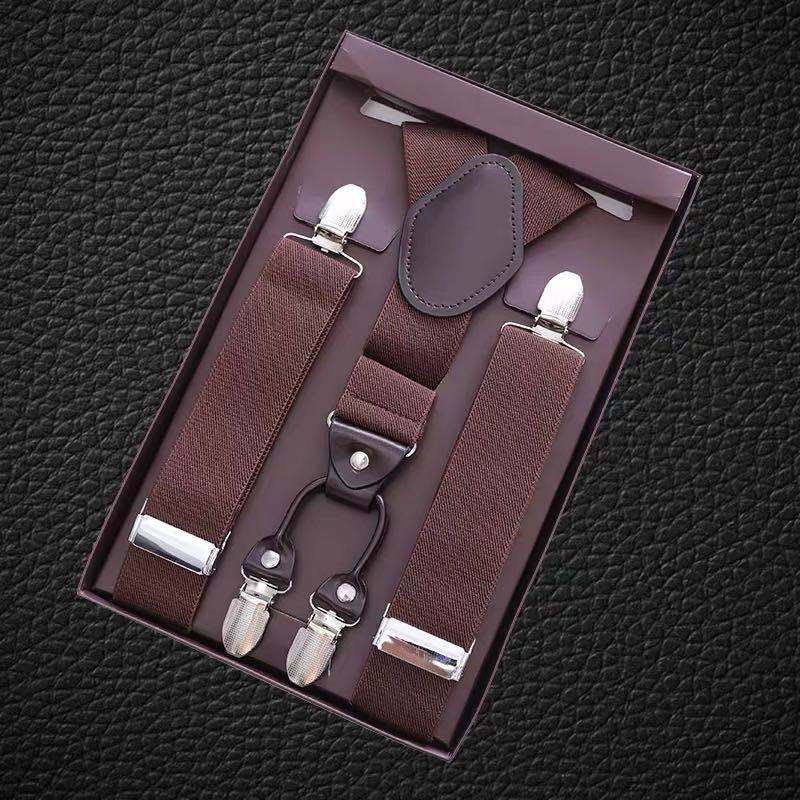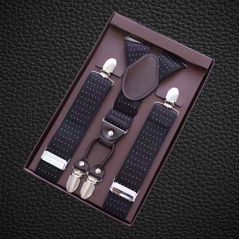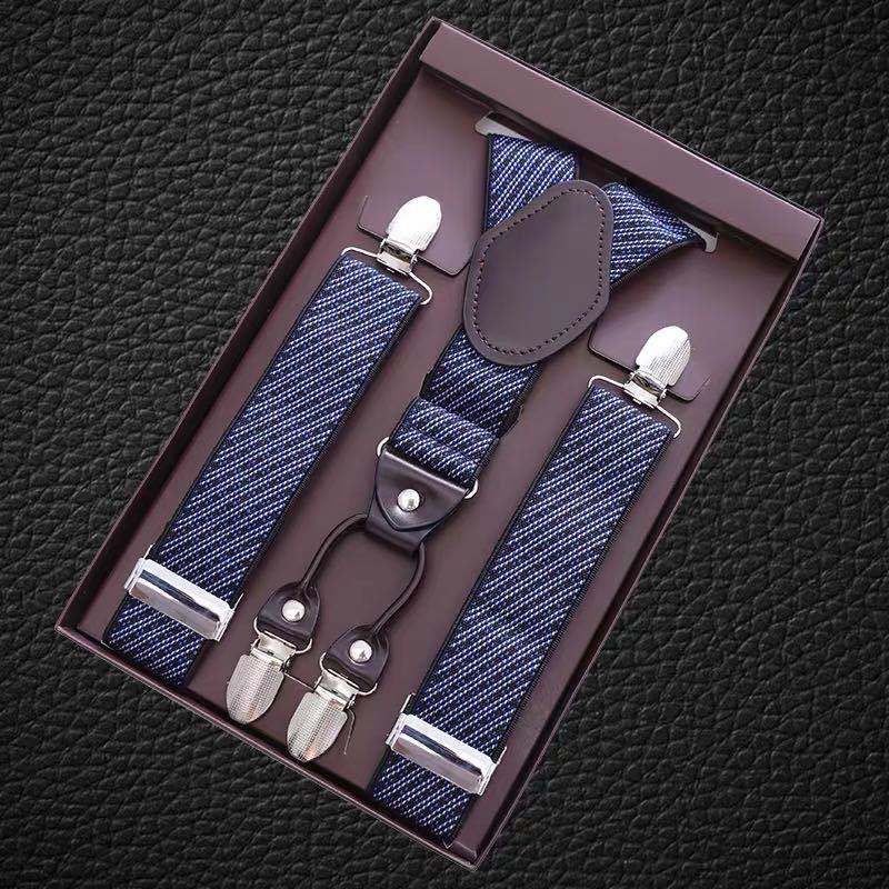 Neue elastische Hose mit Schultergurt-Clip für Männeraktivitäten, Schuluniform in Box, Anzughose mit vier Clips, Hosenträger für Erwachsene und Schultergurt