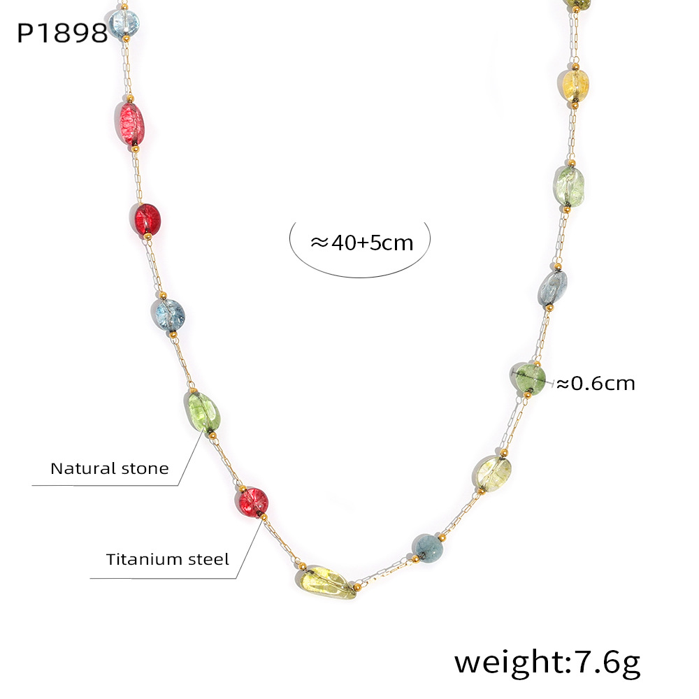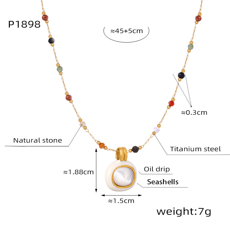 Neue Modepersönlichkeit Nische Titanstahl vergoldet Naturstein Anhänger handgefertigte Perlen Halskette