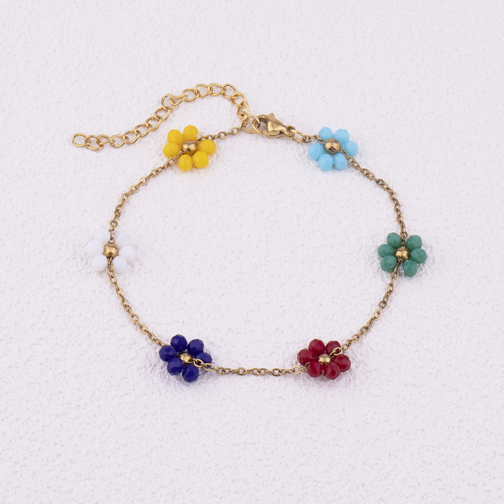 New fresh and sweet stainless steel handmade DIY jewelry, crystal flower bracelet necklace, versatile and fashionable accessory