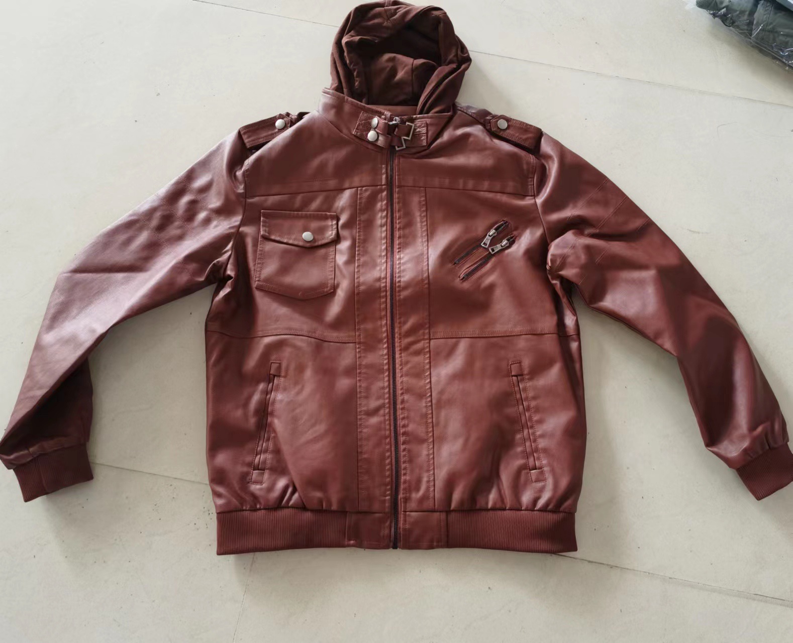 New hooded leather jacket men's 2907 trendy casual motorcycle jacket detachable hat men's leather jacket