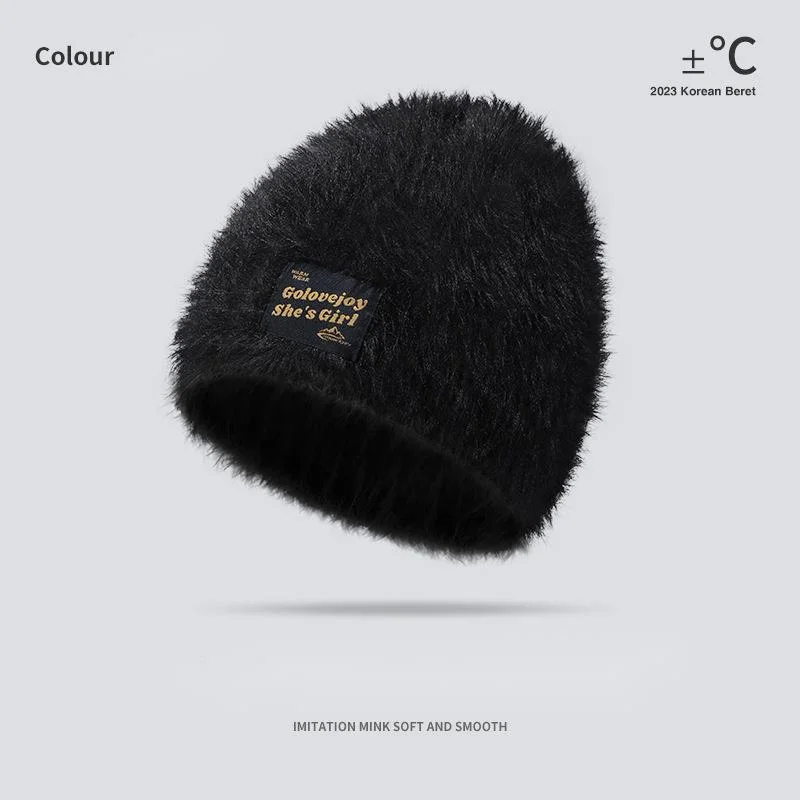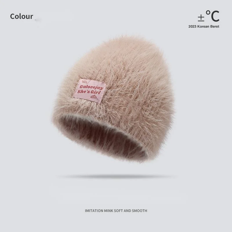 Neue gestrickte Mütze aus Nerz-Samt, Outdoor-Wollmütze für Damen, winddichter und kältebeständiger Plüsch, vielseitige Gehörschutz-Kältemütze