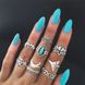 New Moon Lotus Elephant Turquoise 9-piece Joint Ring Set