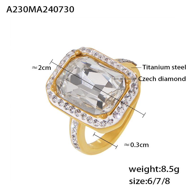 Neuer, leichter Luxus-Ring im Court-Stil mit rechteckigem, eingelegtem großen Diamanten