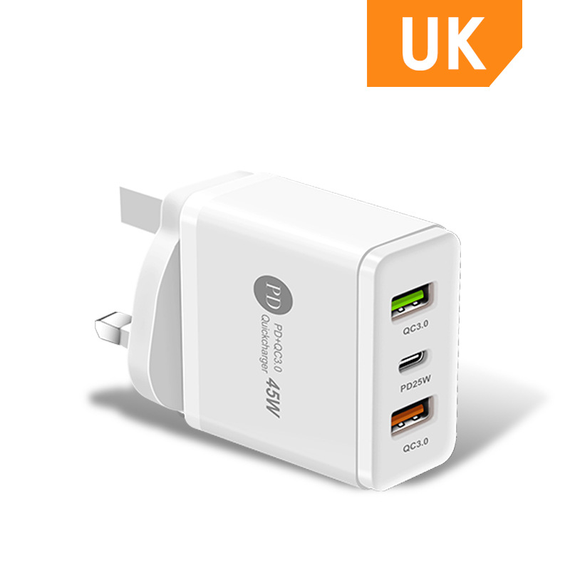 Neues PD45W-Schnellladegerät für Mobiltelefone 5V4A Britischer Standard PD+2USB Multi-Port-Adapter-Ladekopf