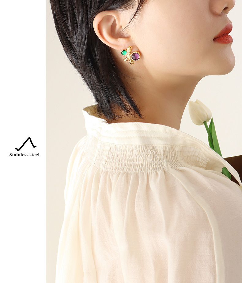 Nischentemperament Ohrringe hohe Textur Retro-Stil Mode Rubin eingelegte Ohrstecker