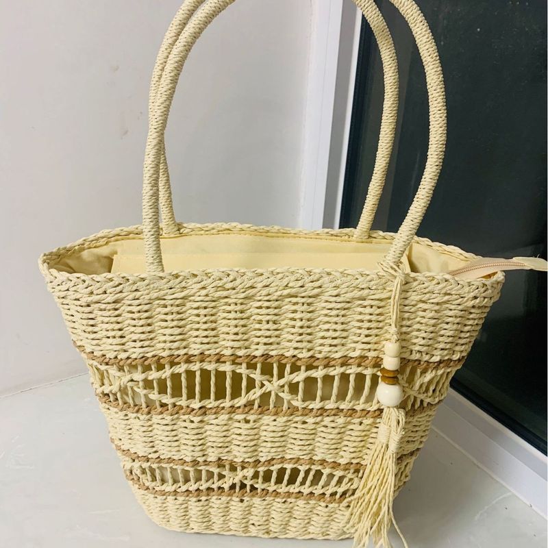 Niche Tassel Woven Bag for Women 2025 New Vacation Straw Tote Bag Large Capacity Commuter Underarm Shoulder Bag