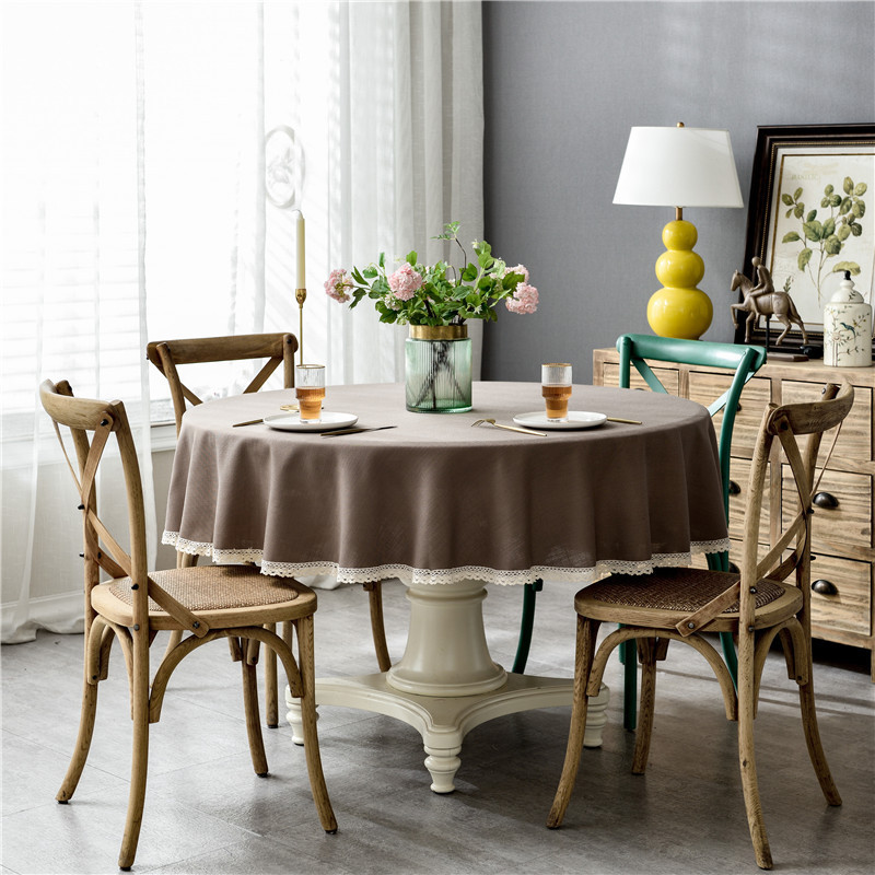 Nordic einfache wasserdichte Tischdecke einfarbig Nachahmung Baumwolle und Leinen Quaste Spitze runden Esstisch Couchtisch Tischdecke