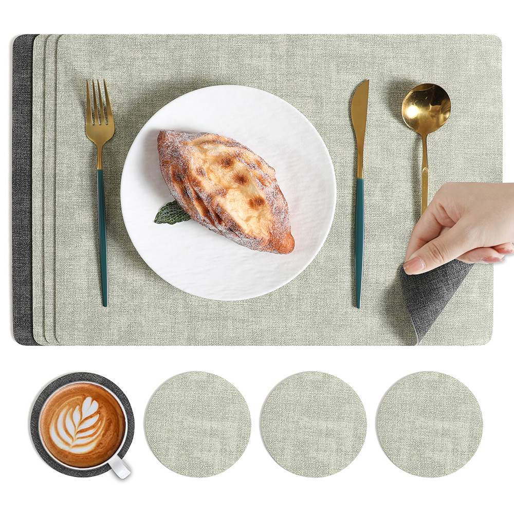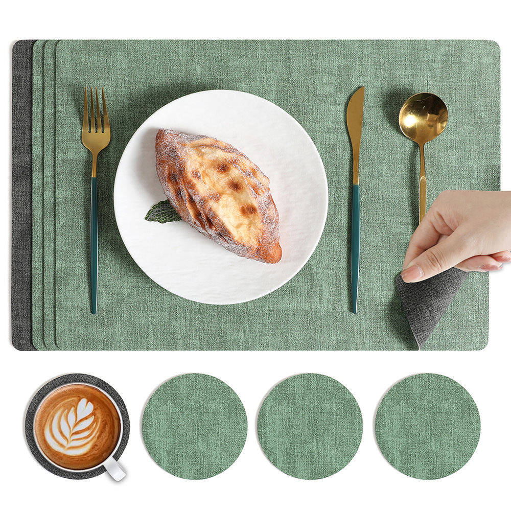 Nordic INS Strukturiertes quadratisches Tischset aus Leder, doppelseitig, für Zuhause, Hotel, Western Dining, wasserdicht, wärmeisolierende Matte