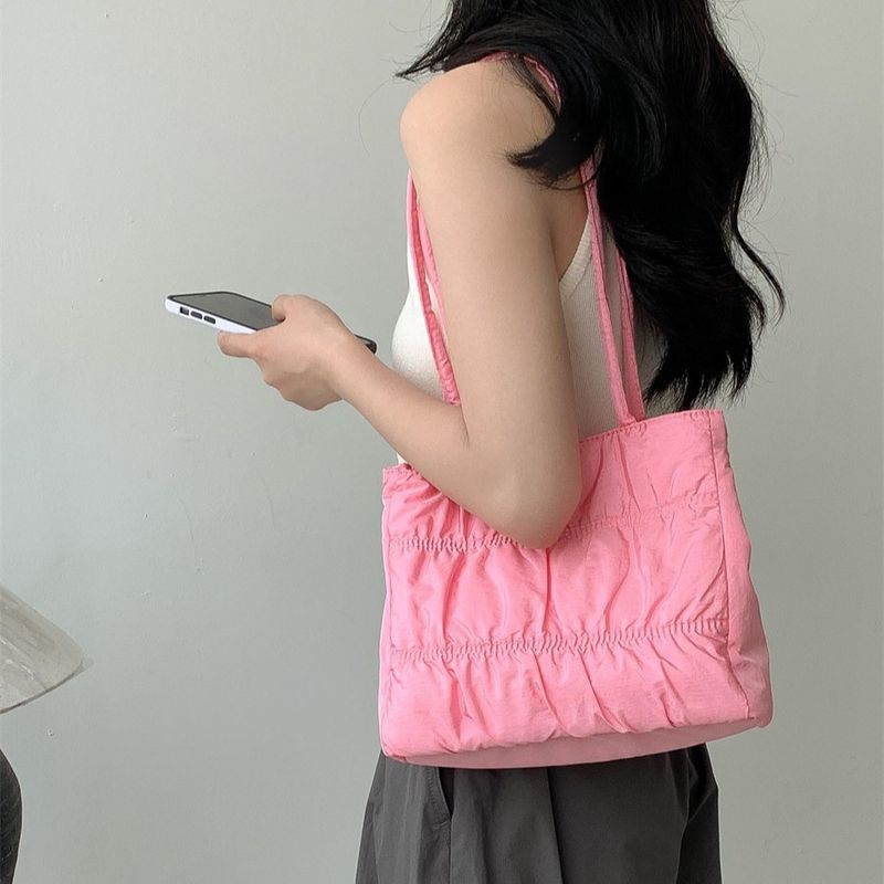 Nylon Pleated Bag 2025 New Niche Design Simple Shoulder Bag Large Capacity Women's Commuter Tote Bag