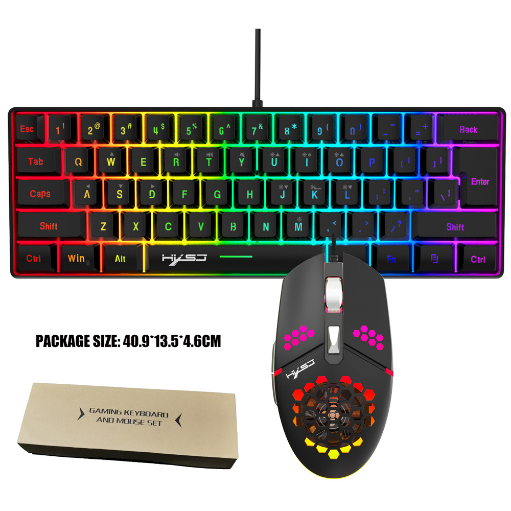 Neu 61 tasten verdrahtet beleuchtete tastatur set fan loch maus büro spiel keybaord