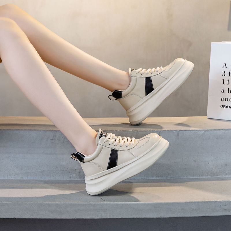 Top layer cowhide high top white shoes for women, 2024 autumn and winter new sports and leisure board shoes, flat bottom versatile trendy shoes for women