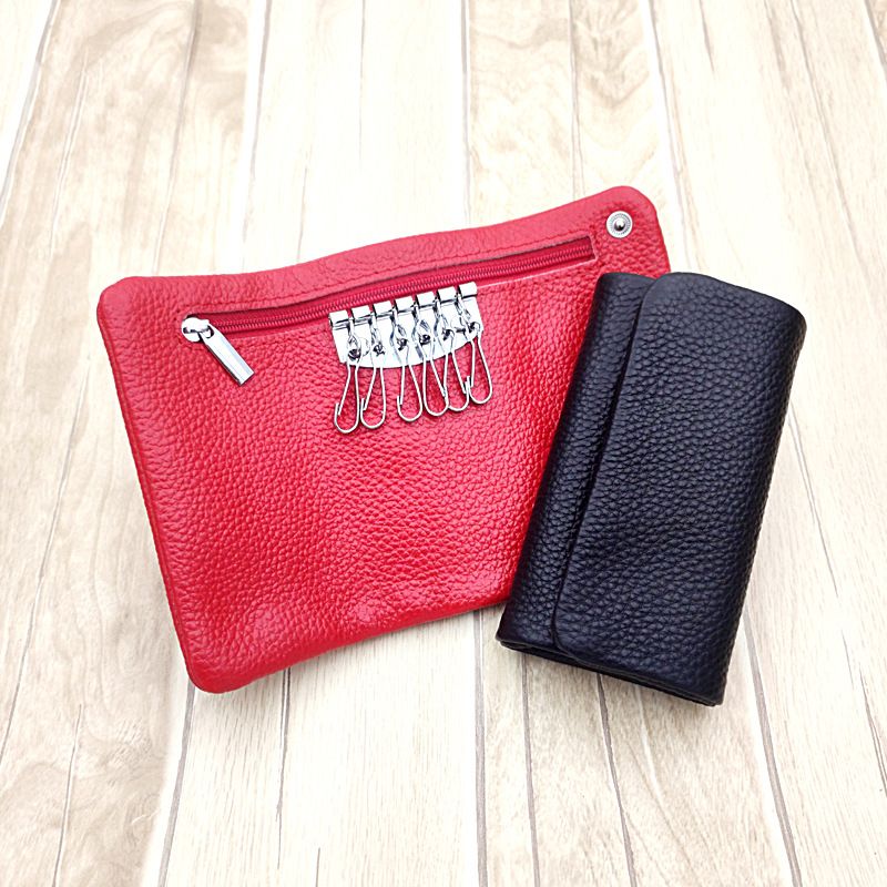 Top Layer Cowhide Key Wallet, Litchi Texture Handheld Large Cash Clip Wallet, Convenient Key Holder