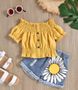 Off-Shoulder-Stretch-Denim-Set für Mädchen – Distressed-Blumenstickerei & Cropped-Top + Shorts (90–130 cm)