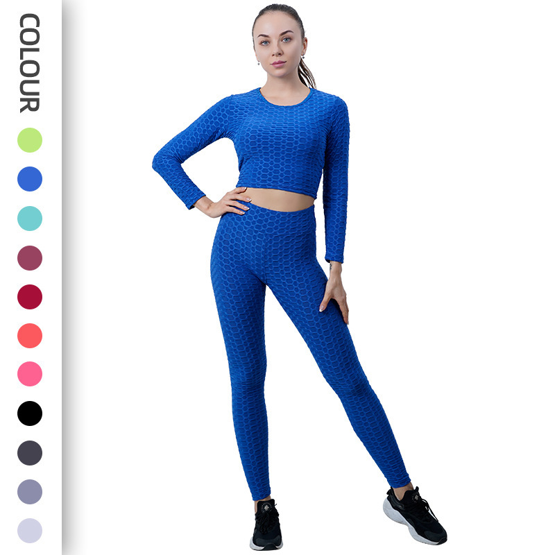 Yoga Outfit Backless Hip-Lifting Fitness Pants Women Plus Size Long Sleeve Bubble Sports Yoga Set Tight-Fitting