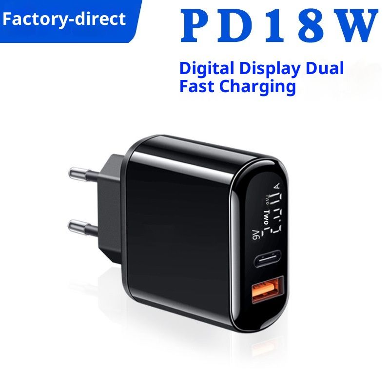 Brand:Neutral,Product Certification:CCC,Compatible Models:Black,Color:EU regulations,Does it have a digital display?:yes,Output Power Current Total Power:18W,Does it support magnetic charging?:No,Maximum Output Power:18W,Compatible Charger Models:Charging plug,Does it support fast charging?:yes,Interface Type:TYPE-C+BUS,Is it original?:yes,Charging Protocol:PD+QC,Item Number:USB57,Plug Standard:European Standard,Output current:240,Output Power:18W,Color Classification:Black