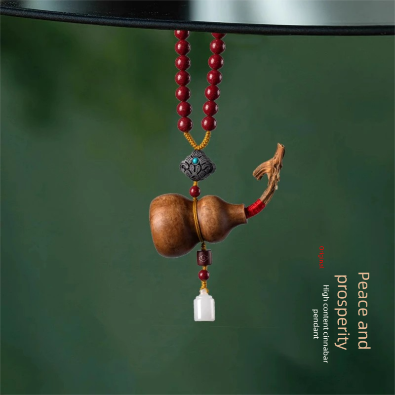 Peaceful Fortune Natural Walnut Wood Snake Head Gourd Car Interior Hanging Ornament Rearview Mirror Decoration Pendant Car Accessories