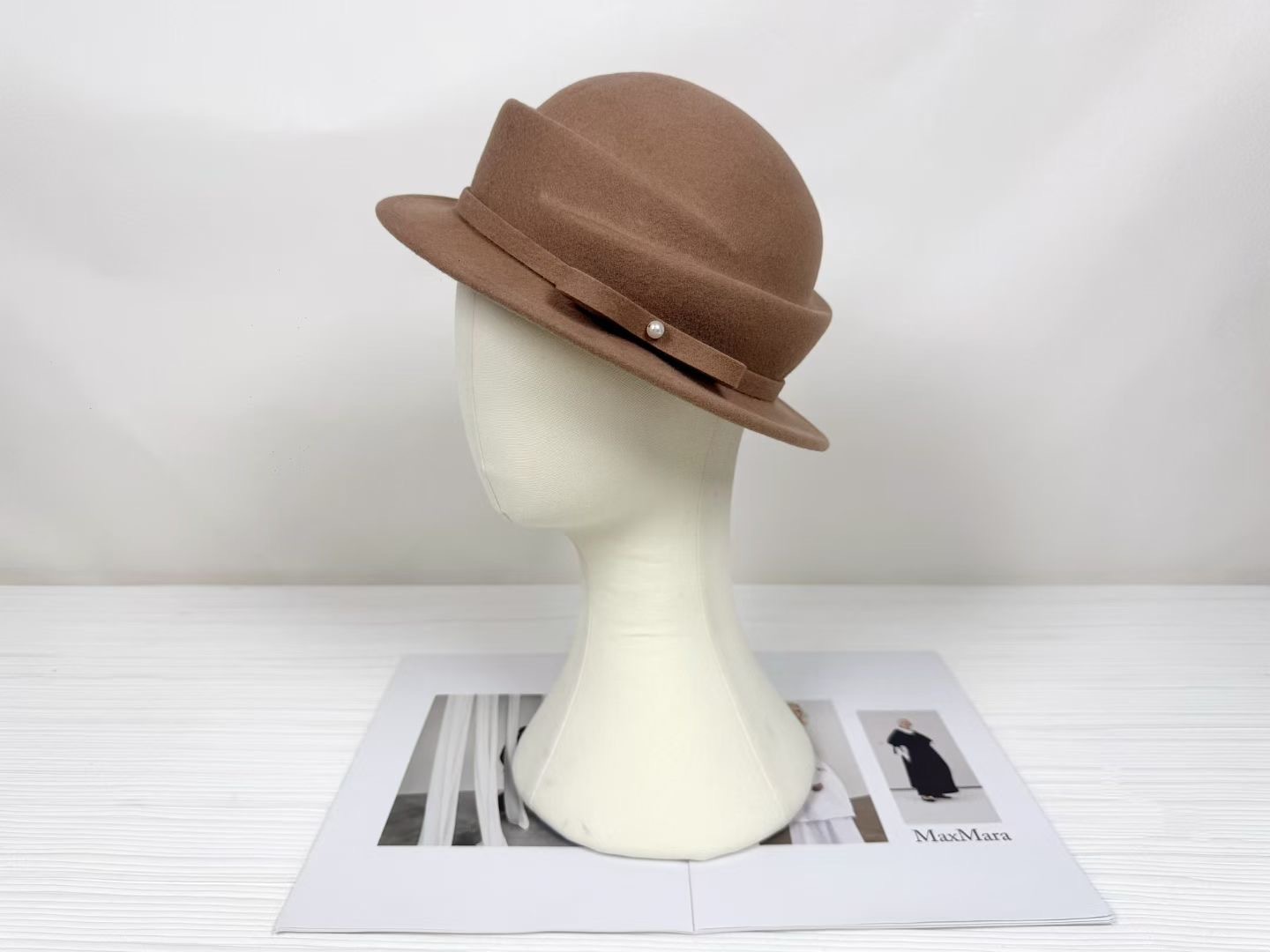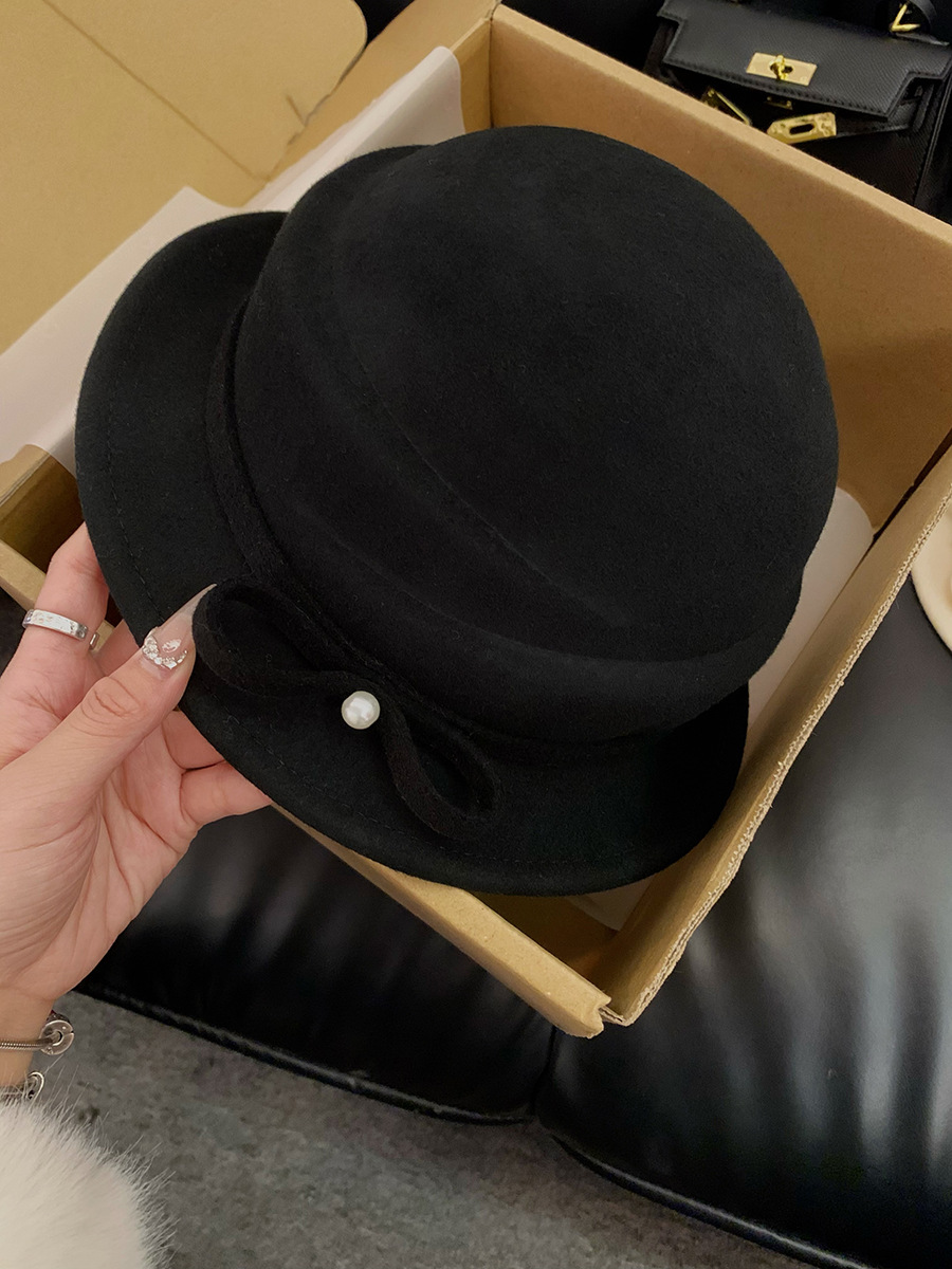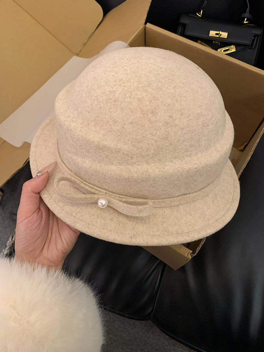 Pearl bow wool women's hat, autumn and winter socialite fashion high-end fisherman's hat