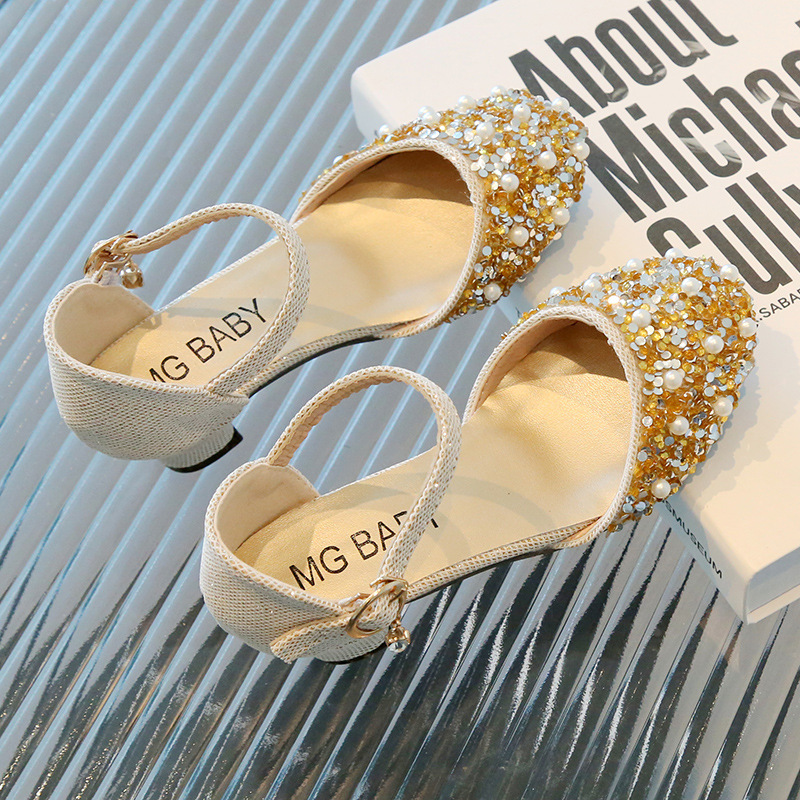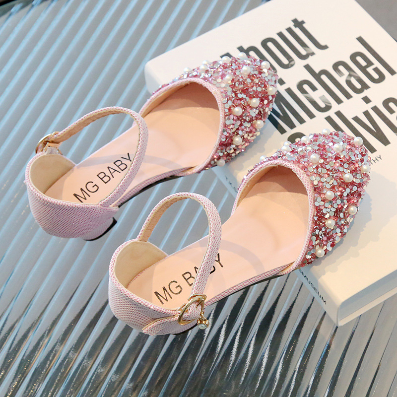 Pearl Water Diamond Children's Princess Shoes, Shallow Mouth Fashion Girls' Sandals, Mid size Children's High Heels, Summer Children's Shoes