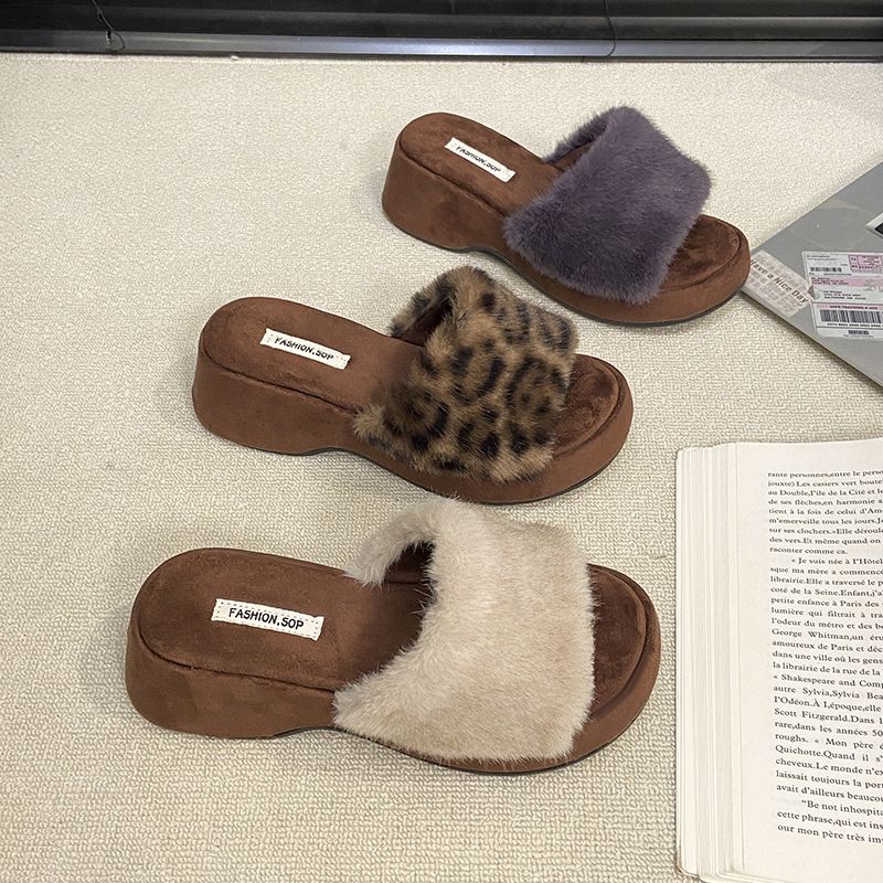 Pelzige Schuhe mit quadratischer Zehenpartie und Leopardenmuster für Damen, Outdoor-Bekleidung, neuer Stil für Herbst und Winter 2025, elegantes, flauschiges, faules Einwort