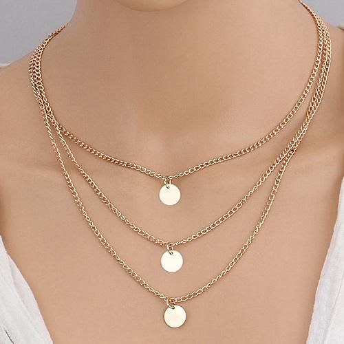 Classic Disc Pendant necklace Multi layer necklace bead charm satellite O Chain Copper iron material European American style
