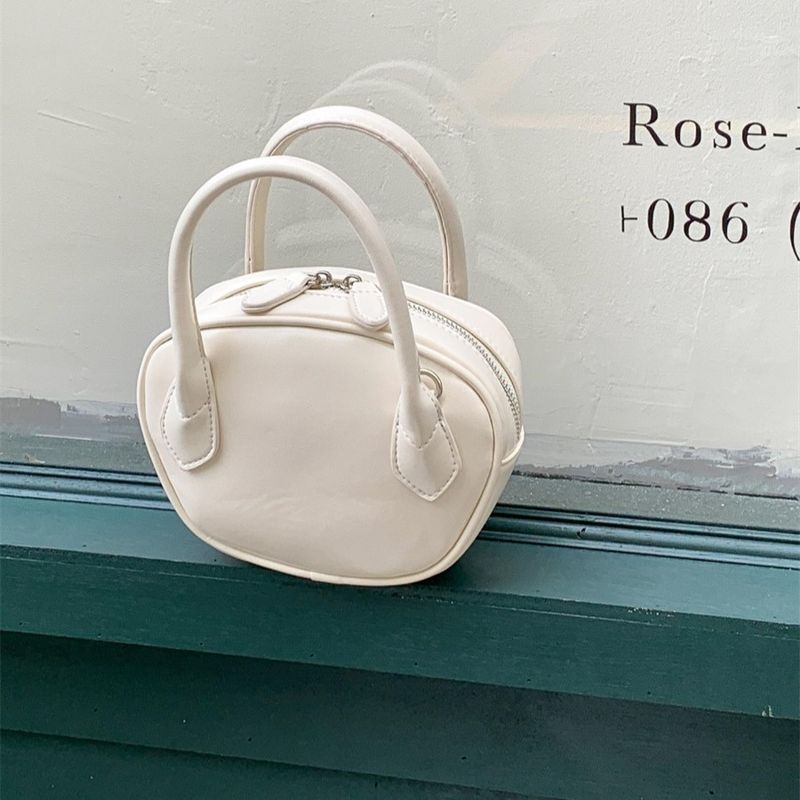 Small crossbody bag, female personality, fashion, niche style, one shoulder mini bag, shaped PU leather mouth, red hand carrying bowling bag