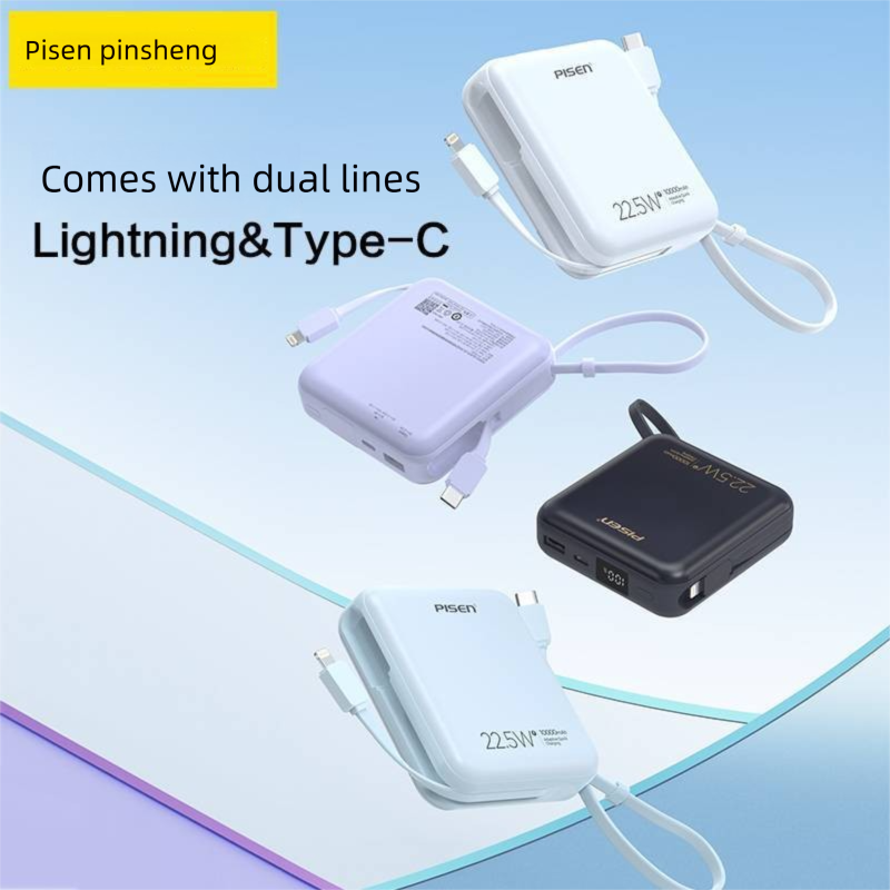 Pisen Built-in Cable PD 22.5W Fast Charging Power Bank Mini Compact Portable Charger Gift Customization