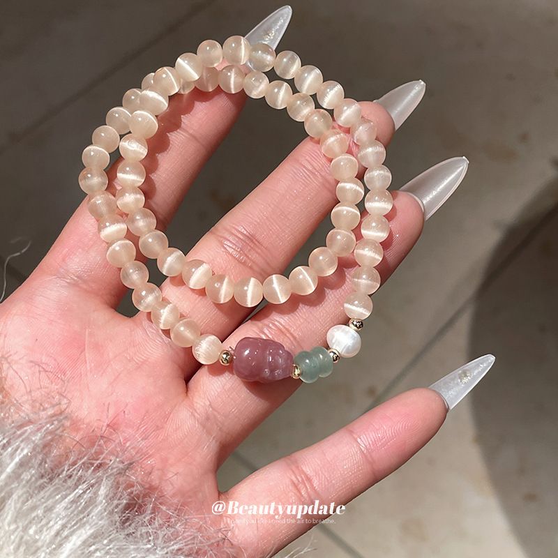 Pixiu Katzenauge Stein Chalcedon Süßwasserperle Licht High-End-Feeling Armband Armreif Nische Mode Temperament