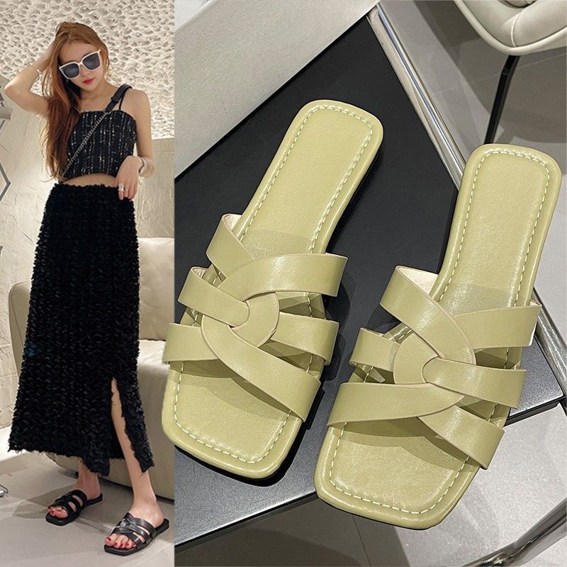 Plus Size Damenschuhe, flache Hausschuhe mit niedrigem Absatz, eckige Zehenpartie, flache Strandsandalen für Damen