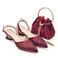 Spitz zulaufende Damenschuhe in Übergröße mit leerem Absatz und Strass-Eimer-Handtasche