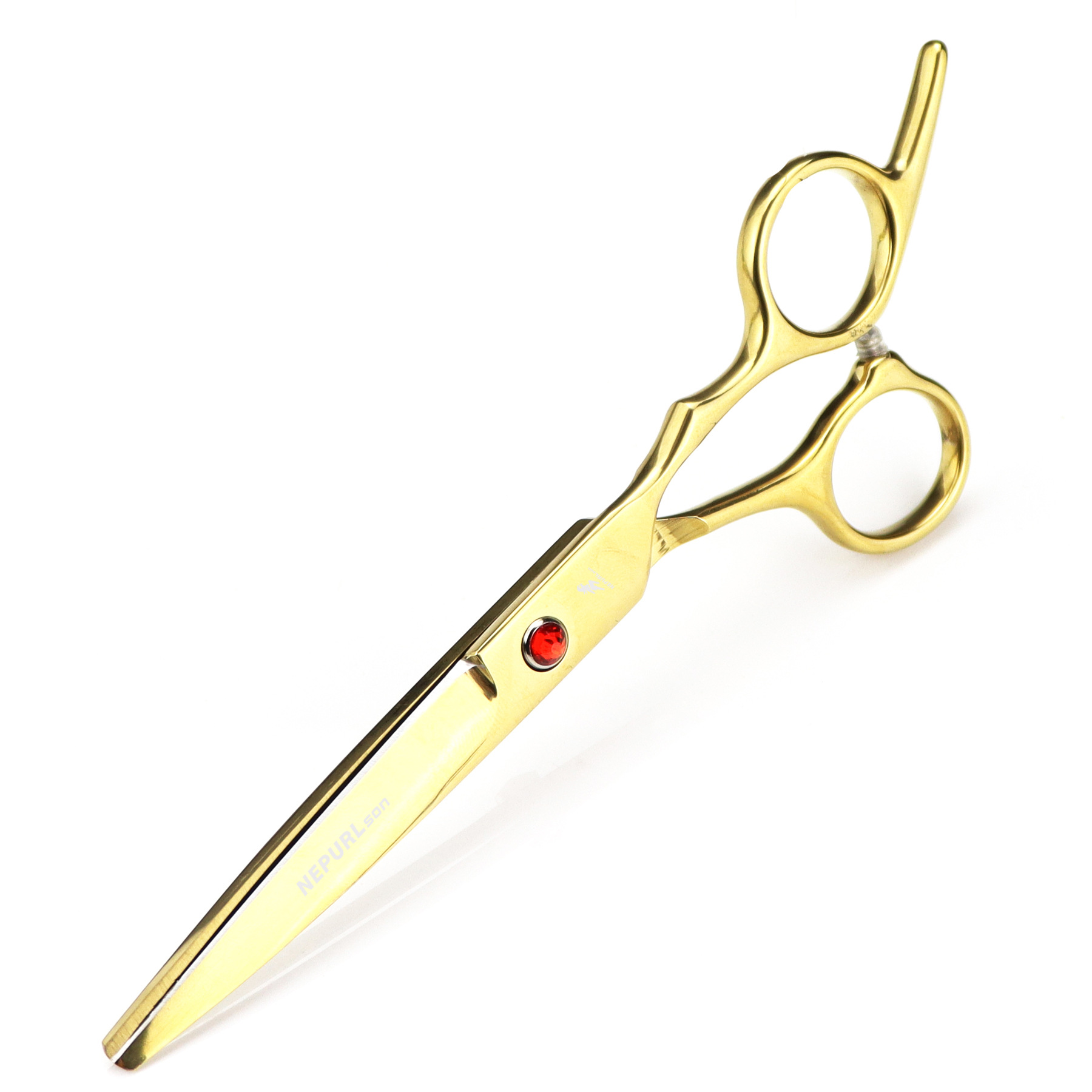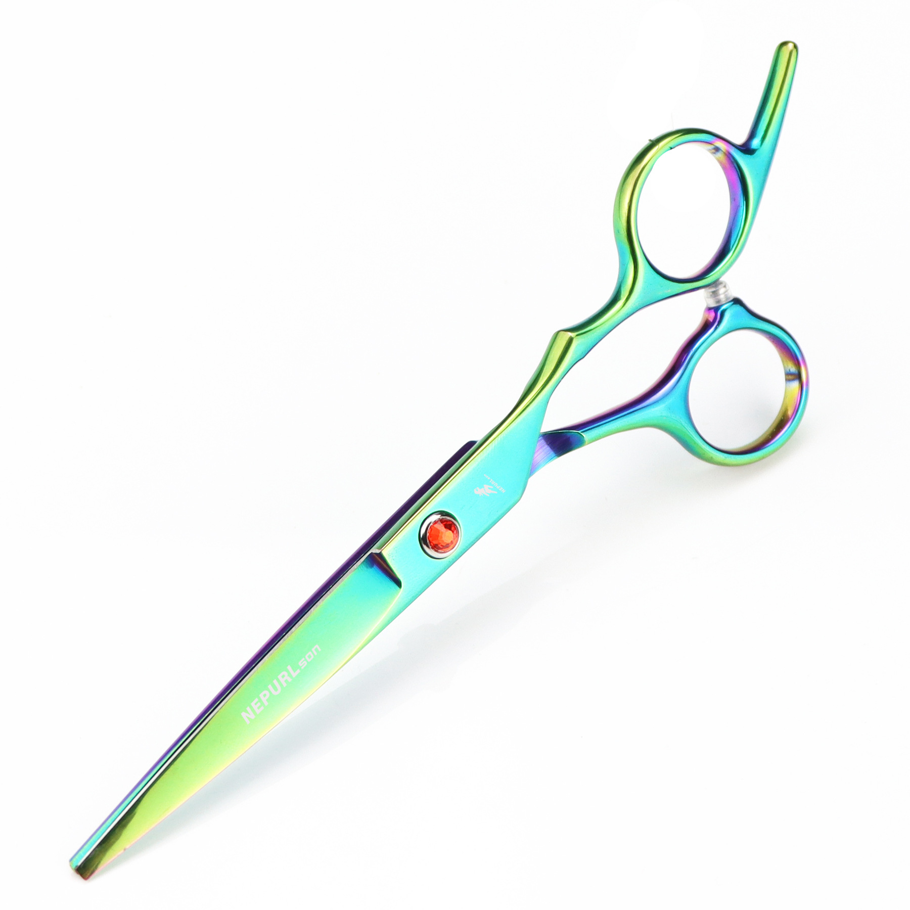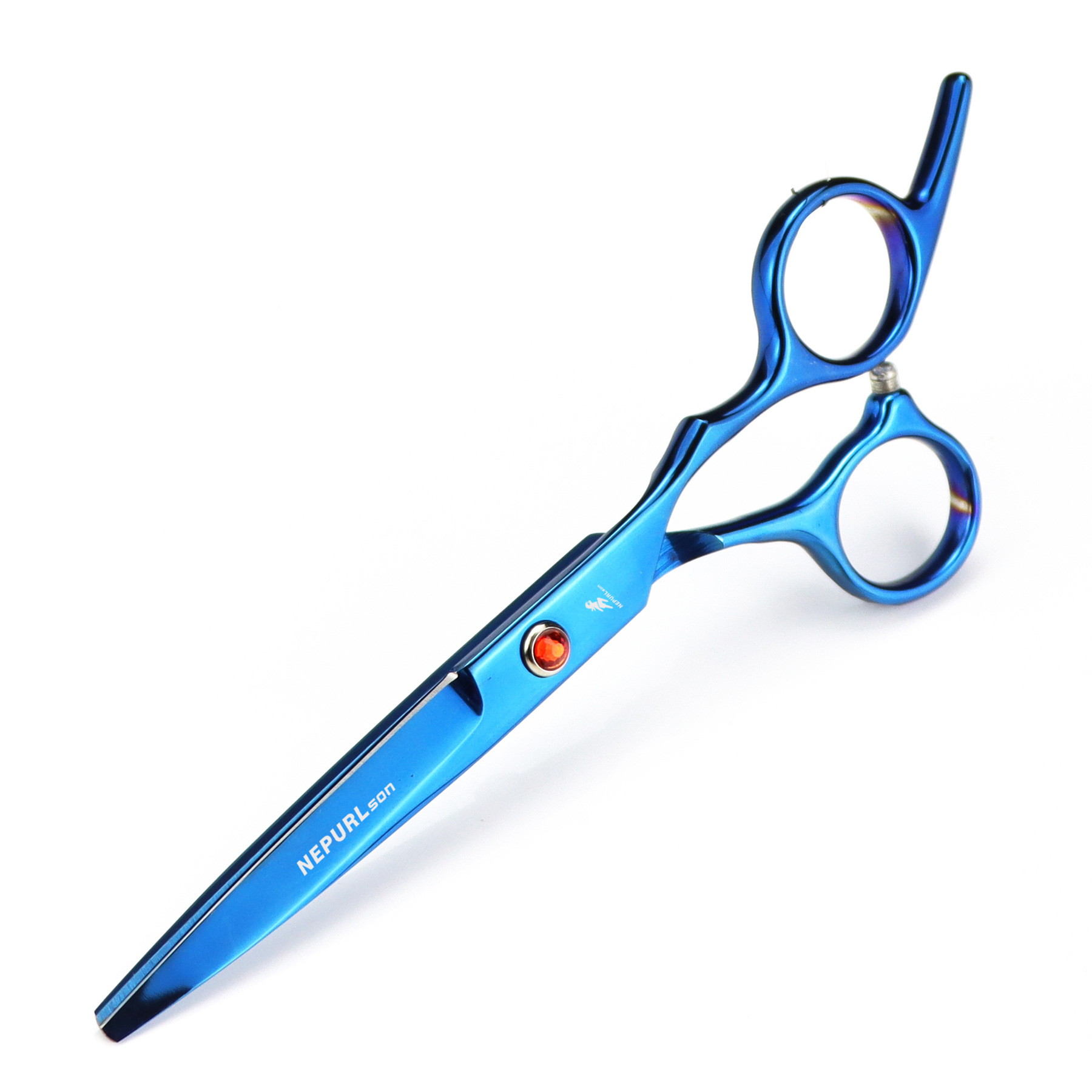 Professional hair cutting scissors, durable, finely crafted, with excellent sharpness, specially treated with ice forging. Suitable for the shape and feel of the Eastern human body. Made from special stainless steel imported from Japan, it is of moderate length, convenient for overall and localized styling and trimming
