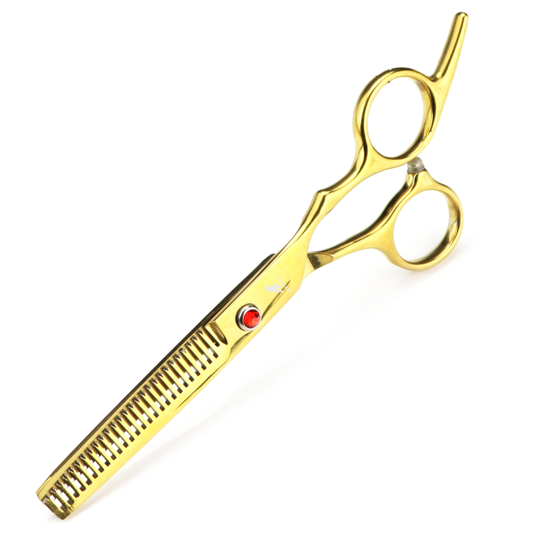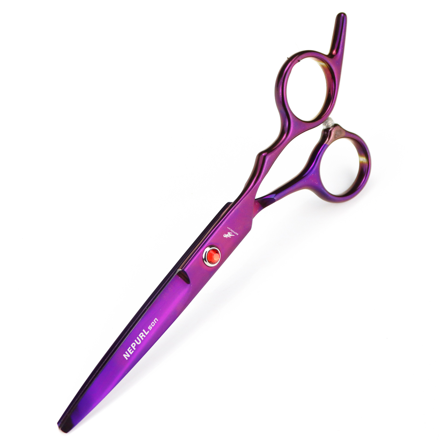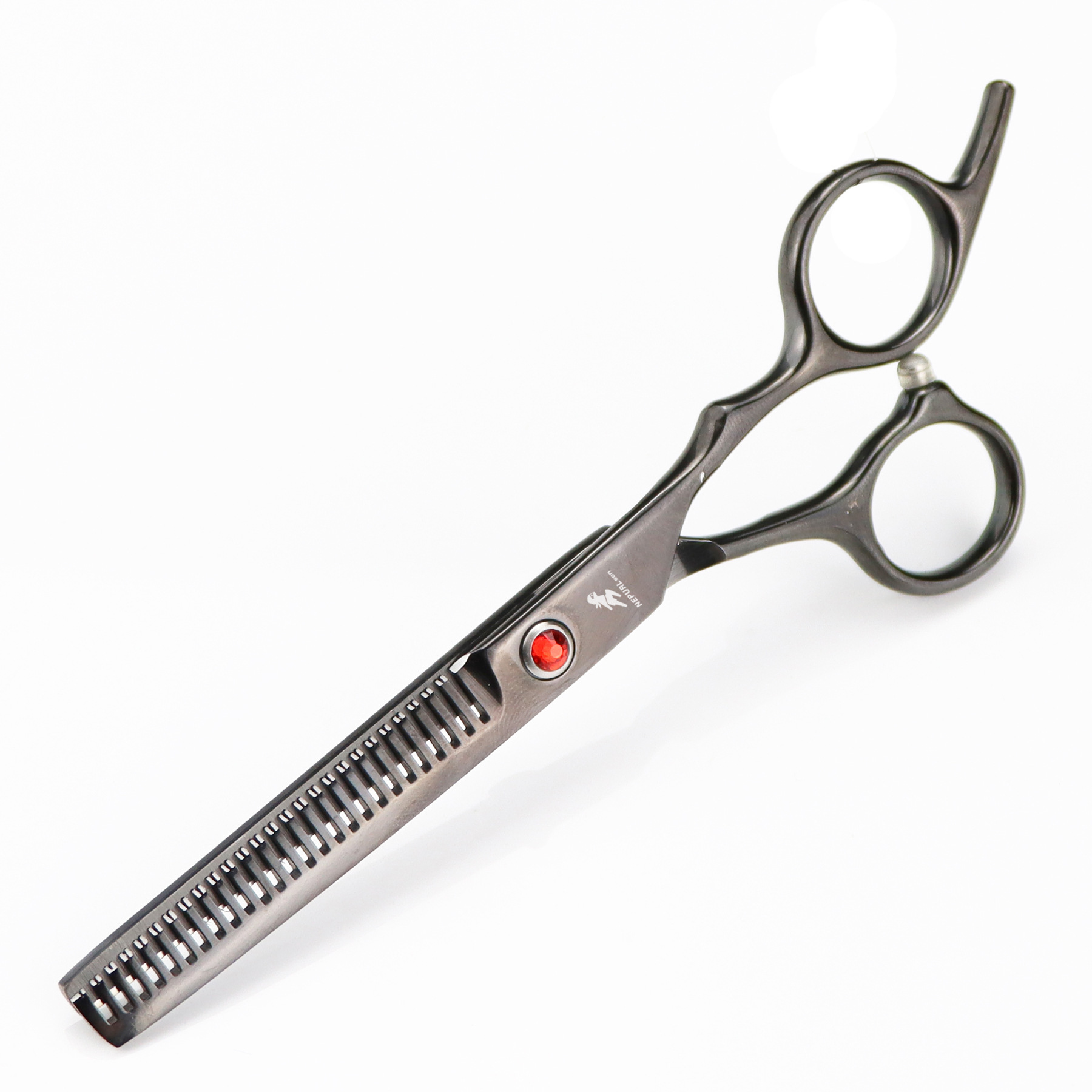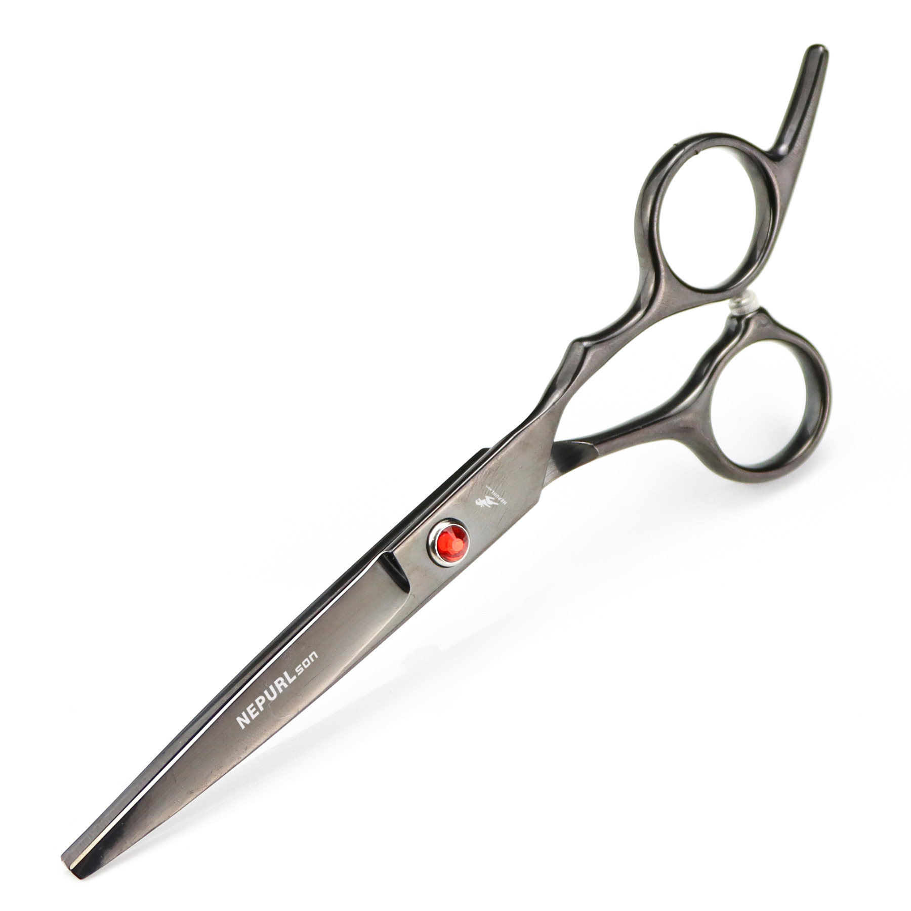Professional hair cutting scissors, durable, finely crafted, with excellent sharpness, specially treated with ice forging. Suitable for the shape and feel of the Eastern human body. Made from special stainless steel imported from Japan, it is of moderate length, convenient for overall and localized styling and trimming