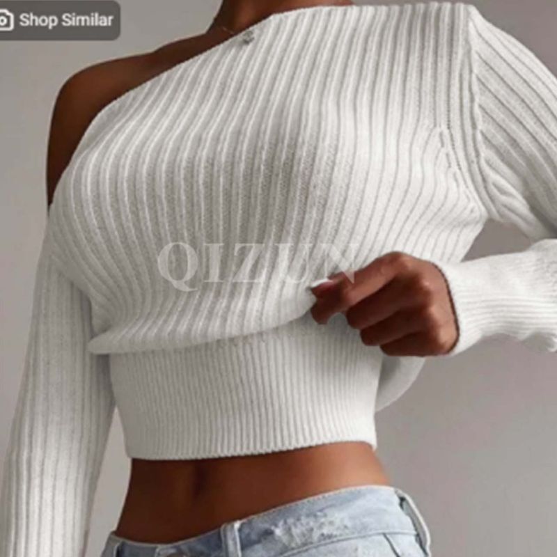 Pullover Solid Color Slim Fit Versatile Slimming Hot Girl Style Knitted Top Women's Short Sweater
