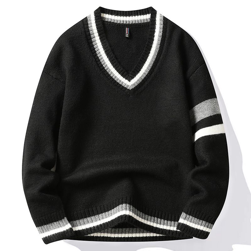Sweater for men in autumn and winter, contrasting colors, loose ribbed V-neck knit sweater, loose fitting, casual long sleeved, youth trendy Instagram sweater for men
