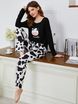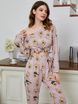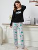 Pyjama, lange Ärmel, Hose, zweiteiliges Set, Milchseide voller Cartoon-Dinosaurier