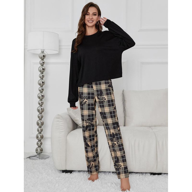 Pyjamas für Damen, Herbst und Winter, Pflanzendruck, langärmeliges Homewear-Set, kann draußen getragen werden