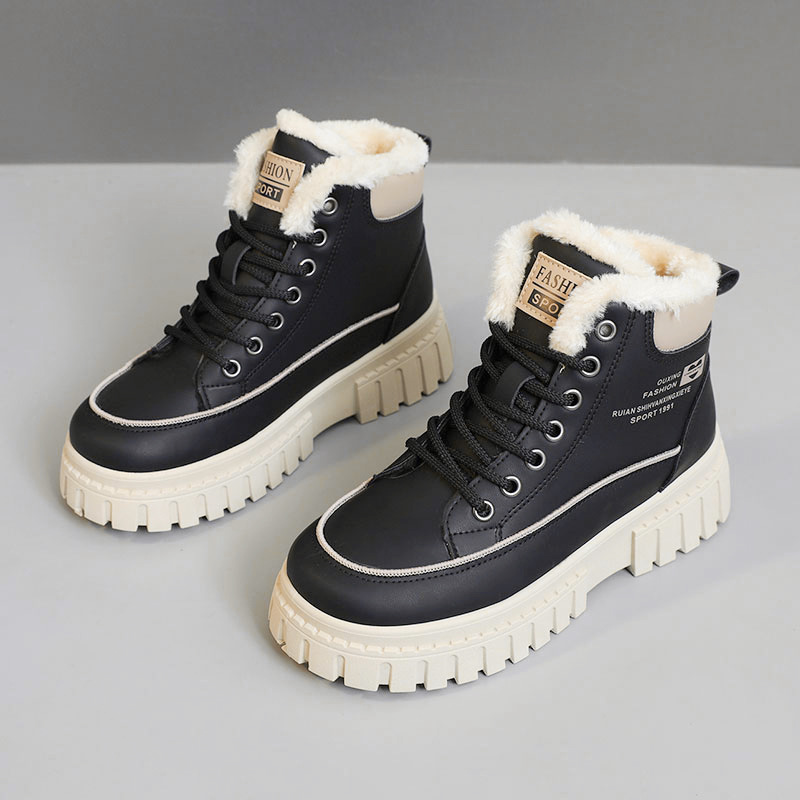 Q505 Neue Herbst-Winter-Sneaker für Damen, High-Top, lockere Passform, dicke Sohle, höhenverstärkendes Material, Baumwollfutter, Fleece, schlichtes Design, ideal für Studenten.